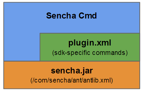 To accommodate this, the functionality of Sencha Cmd is partitioned across two layers: the command line (properly called "Sencha Cmd") and the lower-level interface for use in Ant. Commands that have these special concerns are routed from the command line into a plugin.