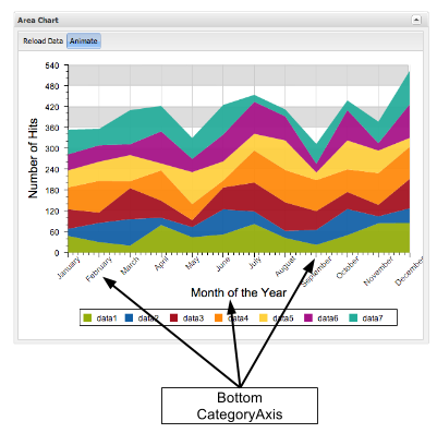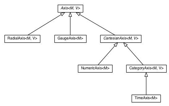 Charts axis positions comprise of the left, right, top and bottom and consist of Axis, CategoryAxis, CartesianAxis, GaugeAxis, NumericAxis, RadialAxis and TimeAxis. 0 to 4 axis can be configured at one time.