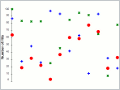 The advantage of separating the chart types into series, instead of making them a part of the chart itself, is that various chart types can be mixed together. In the example below, a Scatter, Line, and Bar Series are all used on the same chart.